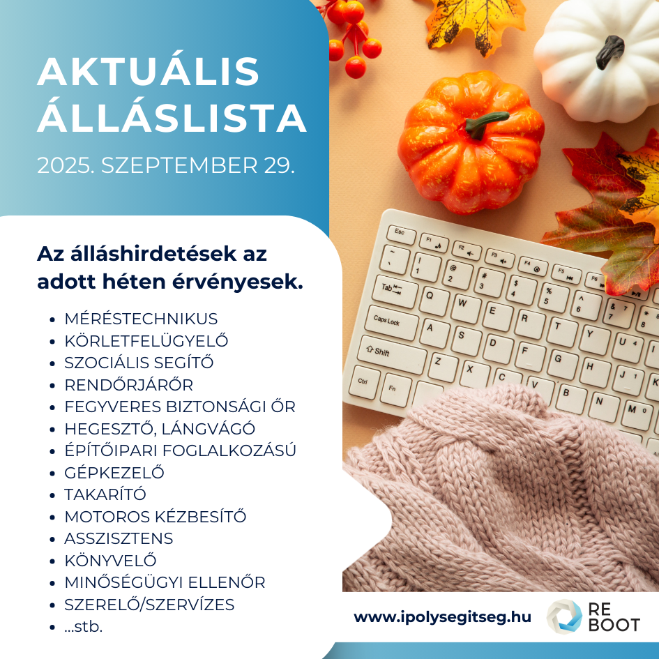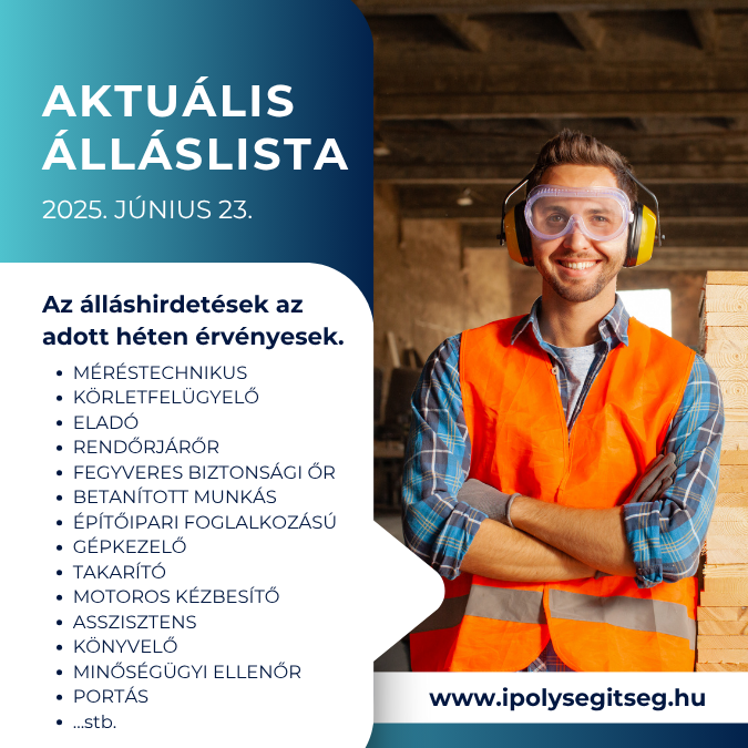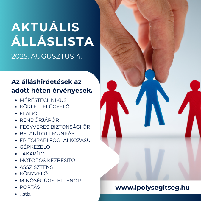 Az álláshirdetések az adott héten érvényesek. Tekintse meg az aktuális álláslistánkat az alább letölthető dokumentumban!